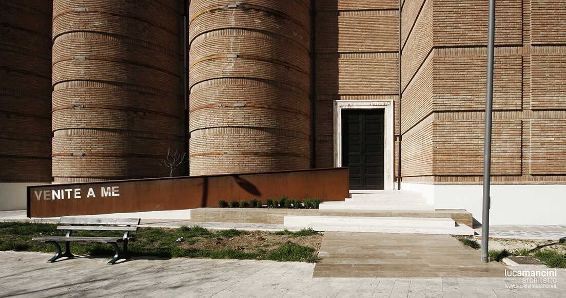 Il progetto nasce dall’esigenza di adeguare il santuario del Cuore Immacolato della B. V. Maria alla normativa relativa all’abbattimento delle barriere architettoniche. La demolizione di una lunga recinzione in muratura ha permesso di riutilizzare l’accesso laterale della chiesa da molto tempo in disuso. Il nuovo ingresso, denominato “ingresso dei catecumeni”, diventa un nuovo elemento di relazione tra interno ed esterno.